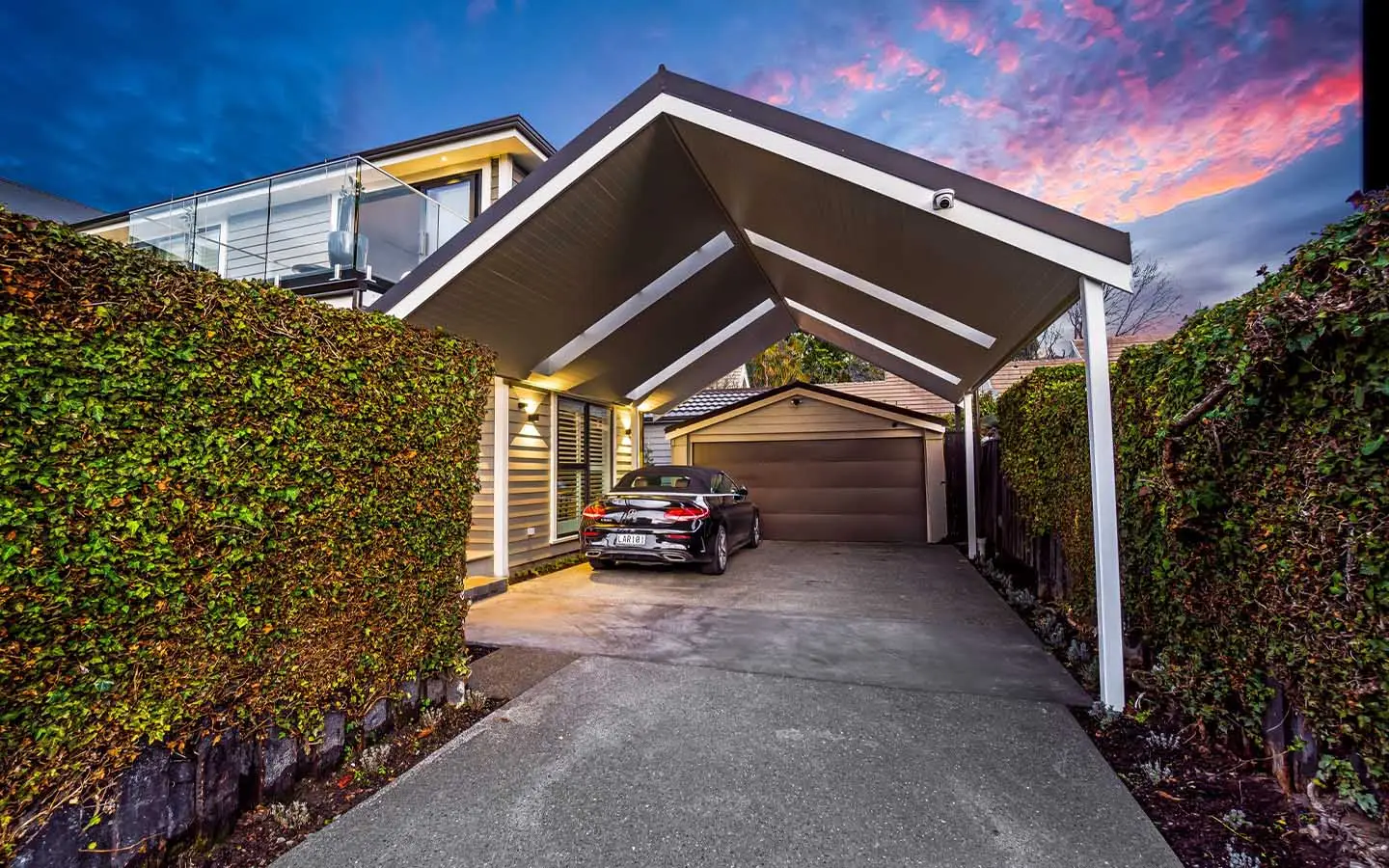 - Custom hardie-board lined carport